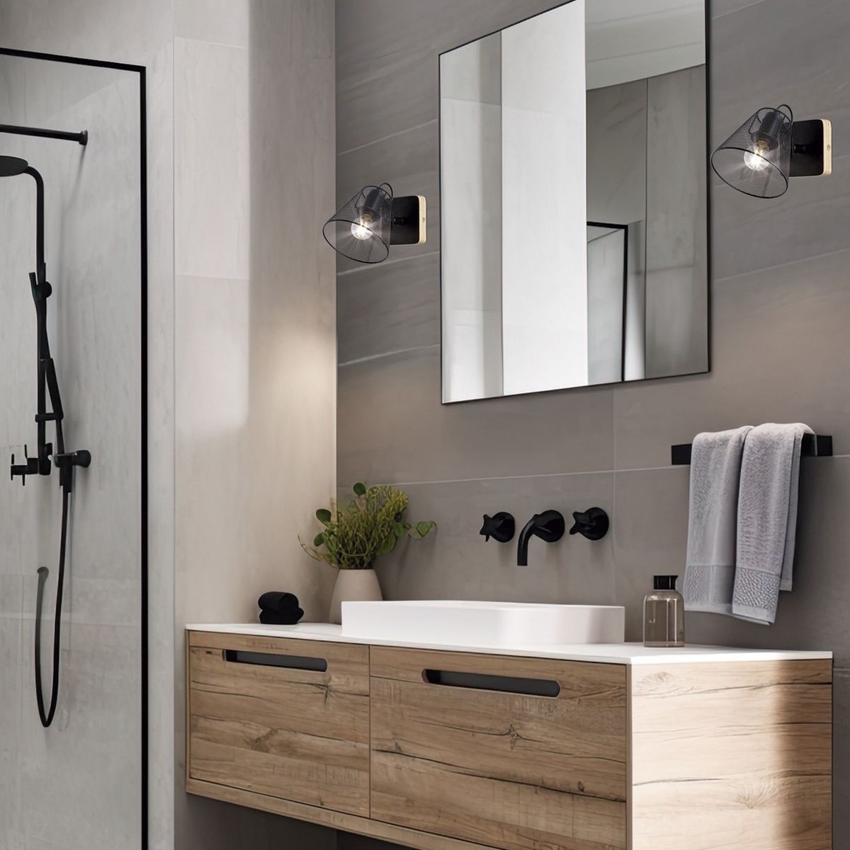 Lámpara / Aplique de pared de la Colección UTRECH fabricado en metal, acabado en negro sobre base de madera. Usa bombilla E-14, Max. 40W, compatibles con tecnología Led (no incluida). Ideal para ubicarla en cualquier estancia del hogar, ya sea en pas