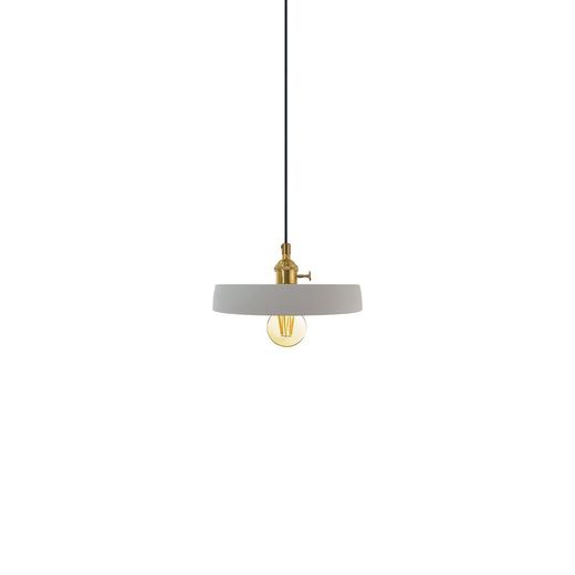 Lámpara colgante CM5041 fabricada ,florón metálico negro , campana de cemento ,portalámparas en latón dorado con interruptor incorporado en E-27 , cable en PVC negro de 1,2 mt. de largo .