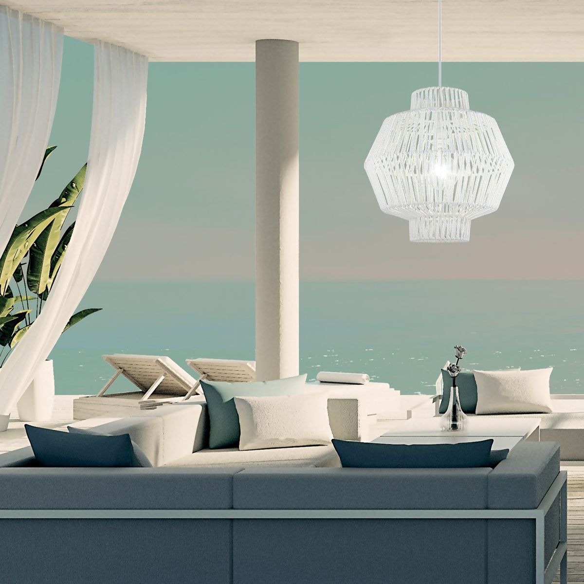 Colgante Balbec Blanco 1 X 60W E-27 Medidas 39x39x56 Potencia 1 X 60W