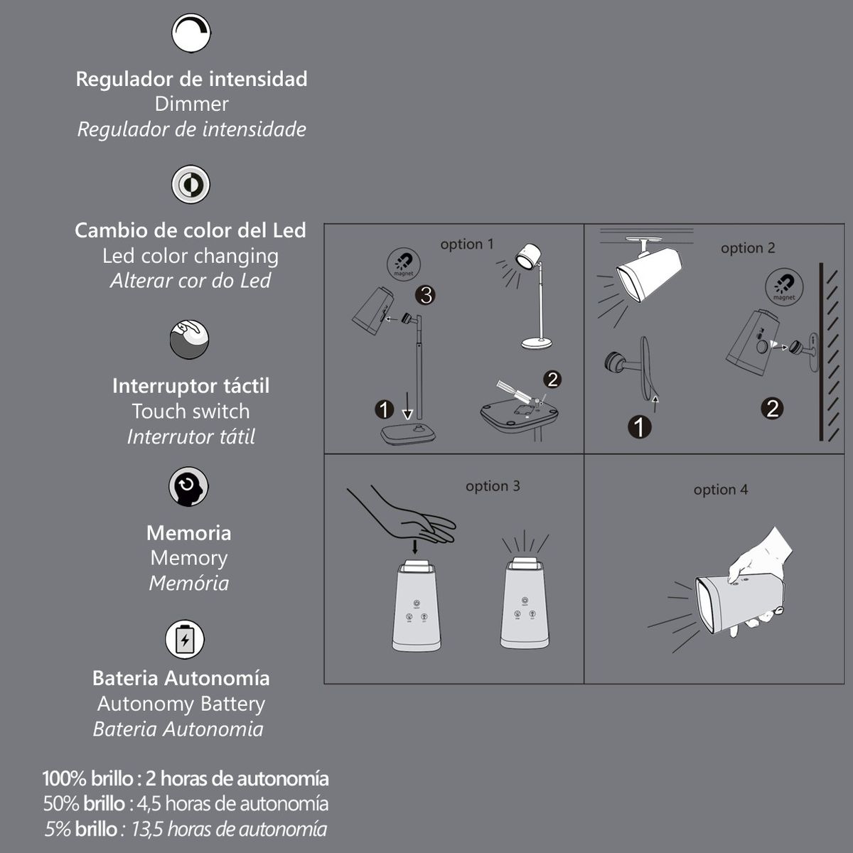 Flexo Led Kanie Blanco Led 6W 350Lm 3000-4100-6300K Medidas 12x17x34 Potencia 6W