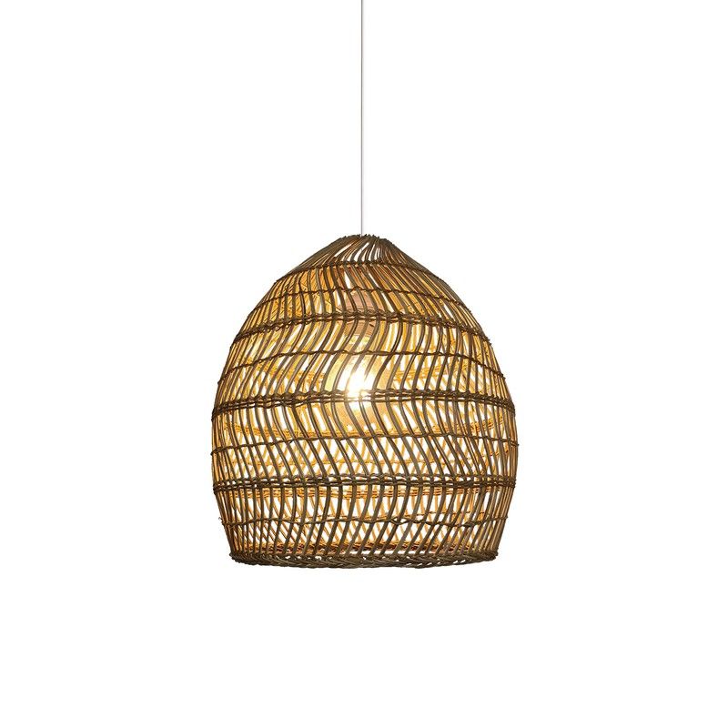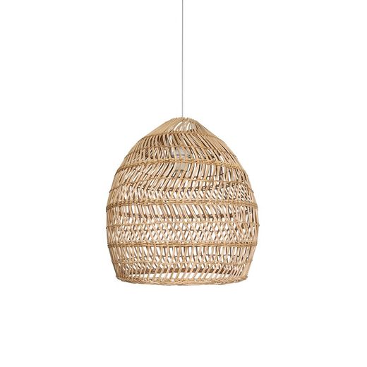 Lámpara colgante KOBE fabricado en ratán natural.Florón blanco metálico con cable en PVC de 1400mm.portalámparas blanco E-27 .Pensado para iluminación de interiores IP20.