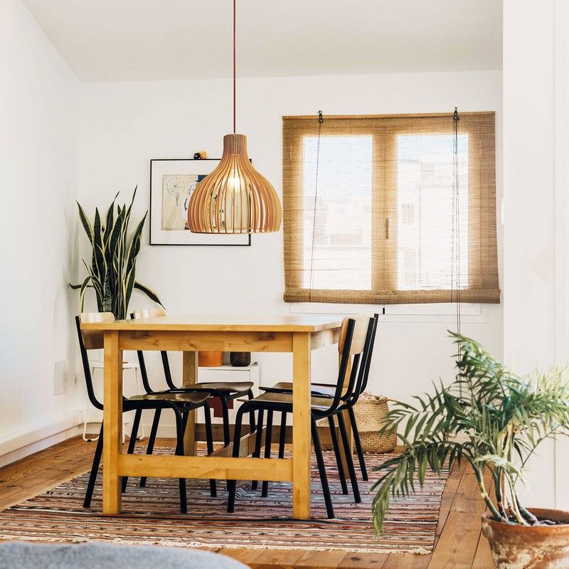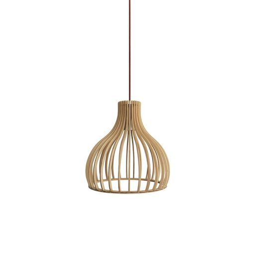 Lámpara colgante MAGNOLIA fabricada en madera color natural.Cable textil marrón de 1,25cm. de largo . Pantalla de 35 cm. de diámetro por 35cm. de alto . Portalámparas E-27 .