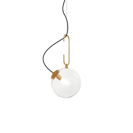 Lámpara colgante MD2417-GD fabricada en metal color pintura oro, tulipa de cristal transparente de 30cm de diámetro , cable en PVC negro de 1,20cm de largo . Portalámparas E-27 .