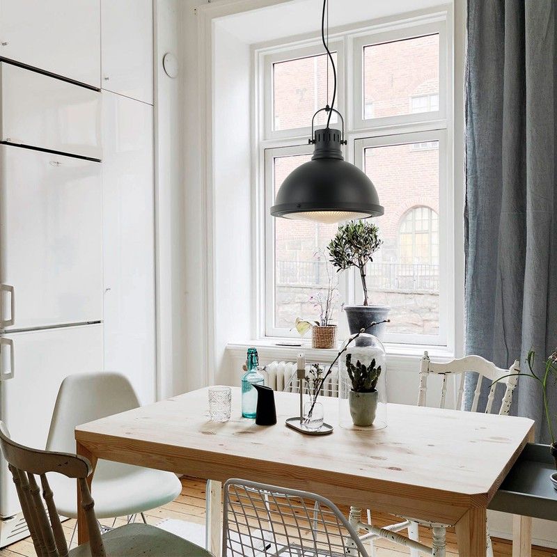 Lámpara colgante MD3221-BK fabricada en metal hierro negro ,cristal texturado , cable en PVC negro de 1,5m. largo . Portalámparas E-27 .