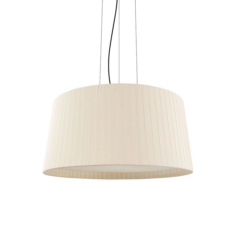 Lámpara colgante MD6300-90IV fabricada en cinta textil de algodón en crudo . Pantalla medidas 900mm. de diámetro por 450mm. de alto.Cable textil negro de1mt de largo . 5 portalámparas E-27.