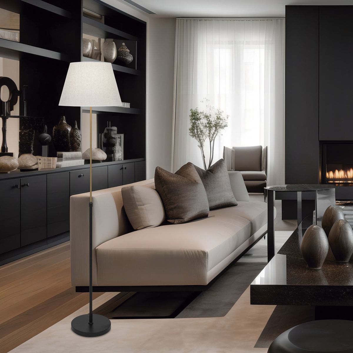 Pie Salon Kendal Negro-Latón 1 X 60W E-27 Medidas 35x35x153 Potencia 60W
