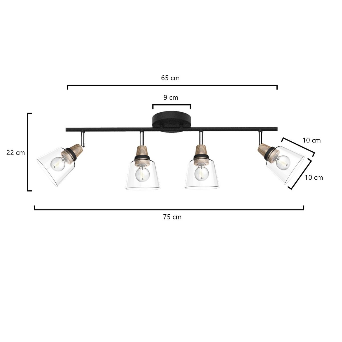 Regleta 4L Indigo Negro-Madera 4 X 40W E-14 Medidas 65x10x22 Potencia 4 X 40W