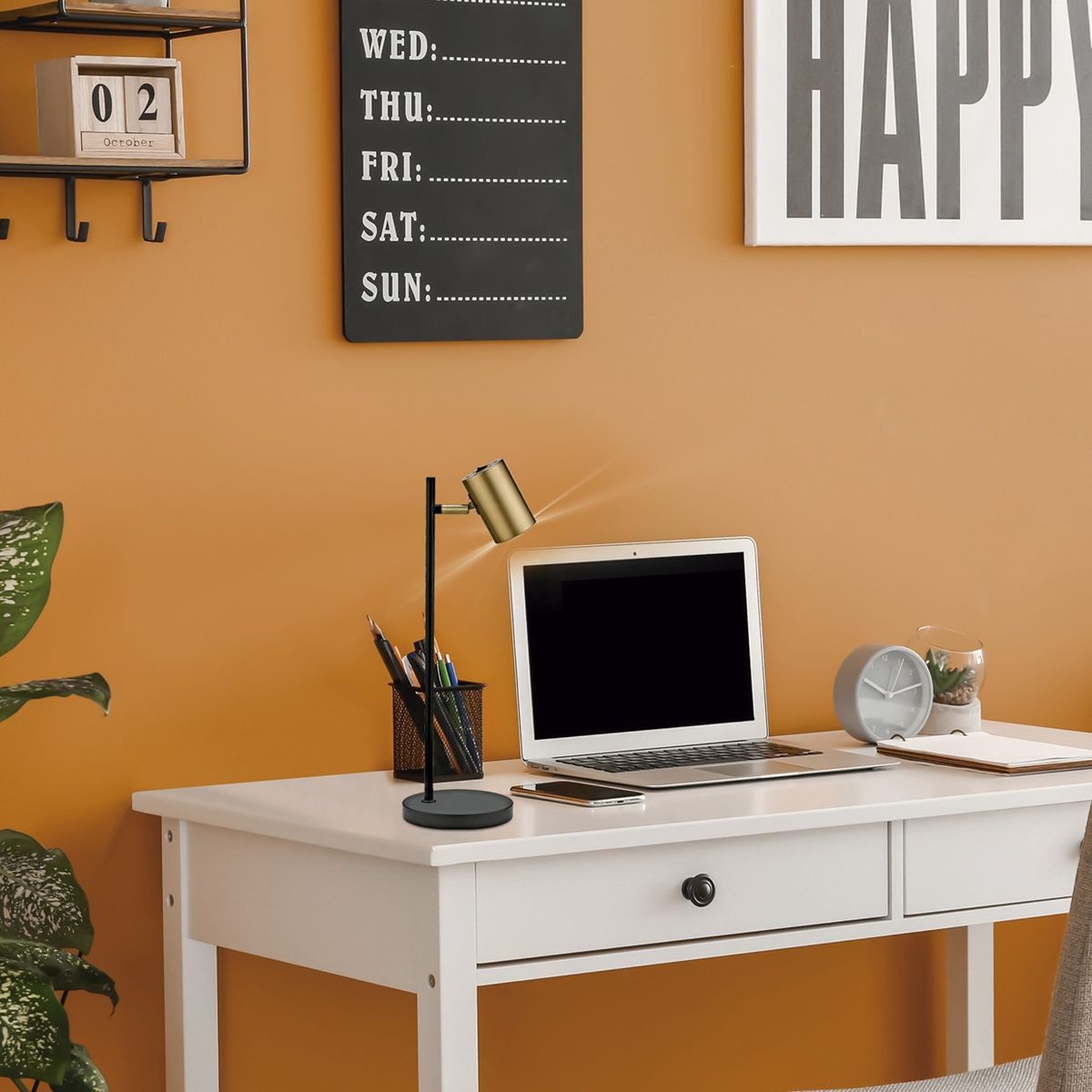 Sobremesa 1L Paros Negro-Cuero 1 X 10W Gu-10