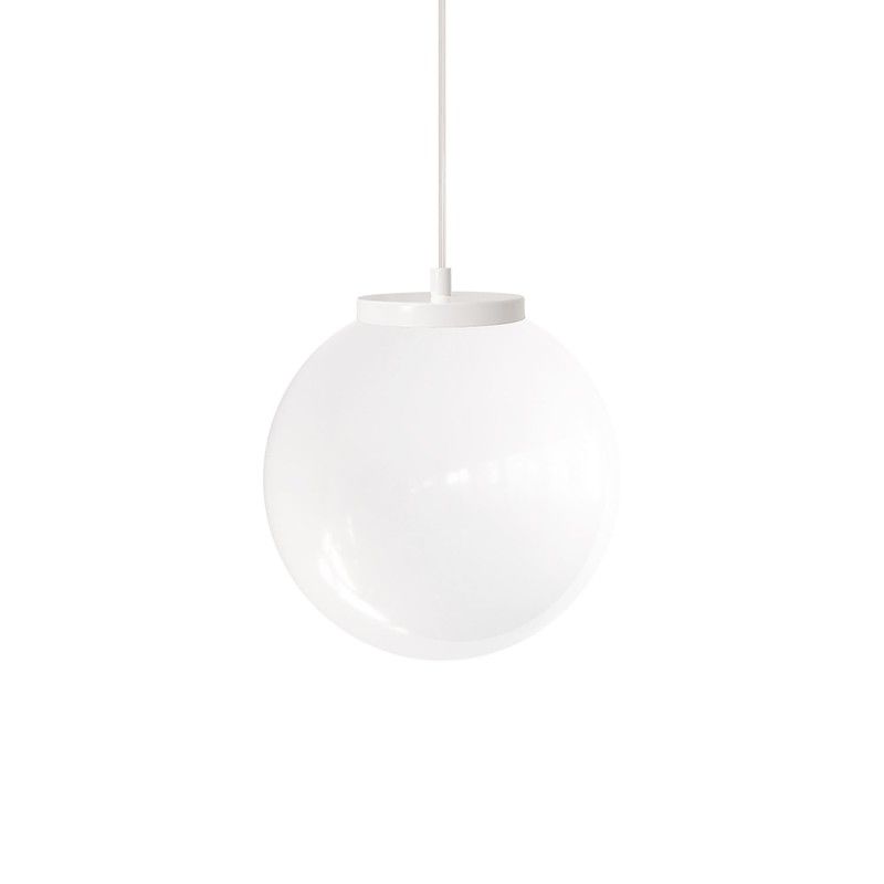 Lámpara colgante VEN PG400OPA .Fabricada en metal blanco cable de PVC transparente.Globo blanco opal de 40cm. diámetro en PMM. IP43 .